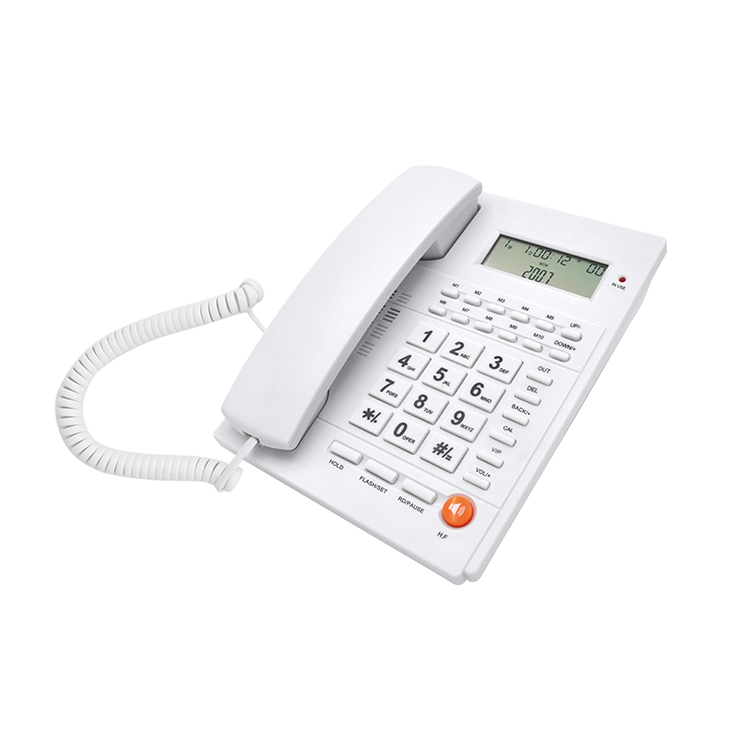 PA117 Prise en charge du téléphone fixe Dtmf fsk Identification automatique du système double. Vérification du numéro/de l'heure du numéro appelant, fonction de vérification et de recomposition rapide, maximum 61 groupes d'appels à 8 chiffres et 16 groupes d'appels sortants à 8 chiffres. Matériau ABS de haute qualité, durable pour une longue durée de vie. Alimenté par une ligne téléphonique, pas besoin d'installer de batterie, d'économie d'énergie et de protection de l'environnement. Il peut répondre aux besoins des appels quotidiens, adapté aux familles, aux bureaux et aux hôtels.